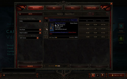 Интерфейс аукциона позволяет быстро по избранным критериям найти нужную вещь