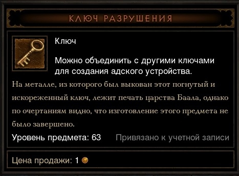 - Ключ разрушения можно получить в качестве награды за победу над Одигом Хранителем Ключа в Гиблых полях (Акт I).