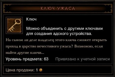 - Ключ ужаса можно получить в качестве награды за победу над За’Ритом Хранителем Ключа в Каменном форте (Акт III).