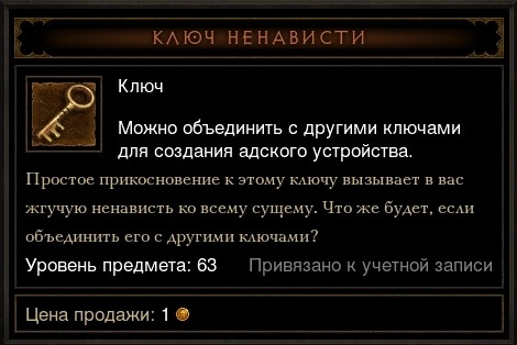 - Ключ ненависти можно получить в качестве награды за победу над Сокаром Хранителем Ключа в Далгурском оазисе (Акт II).
